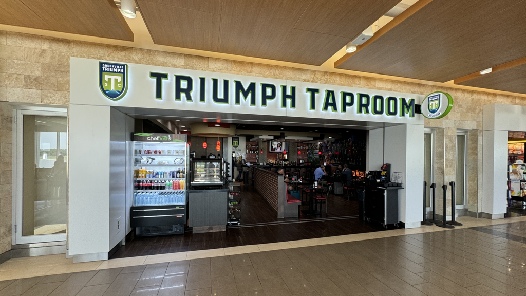The Triumph Taproom is the result of a partnership between GSP and Greenville Triumph SC that began on the pitch and has continued into the airport. This exciting new dining concept will offer hearty dishes and game-time favorites alongside a selection of craft beers, including local favorites from the Thomas Creek Brewery.