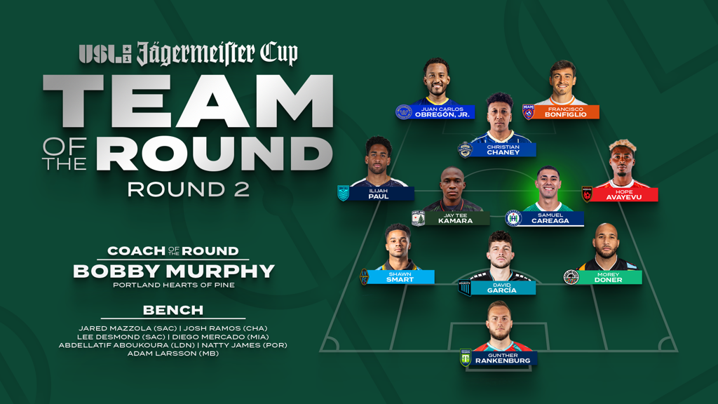 TAMPA, Fla. – The United Soccer League today announced the Team of the Round for Round 2 of the 2025 USL Jägermeister Cup, with Hartford Athletic midfielder Samuel Careaga named Player of the Round after posting a two-goal performance in his side’s victory against Westchester SC.