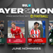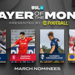 Five nominees announced for 2021 season’s third Player of the Month award